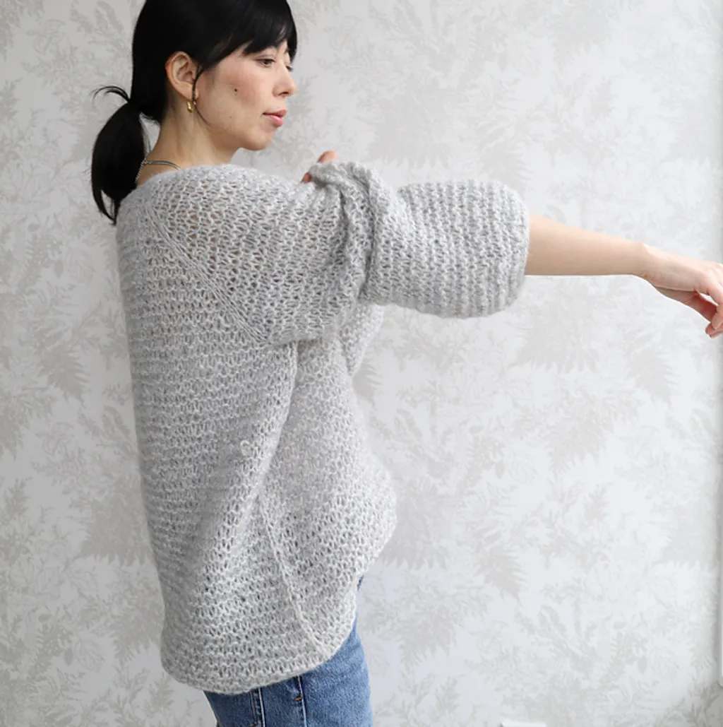 由日本設計師Shimizu Eri,以充滿空氣感、如棉花糖般的Gabo Wool 經典線材- Fog 設計的一款超寬鬆休閒上衣。