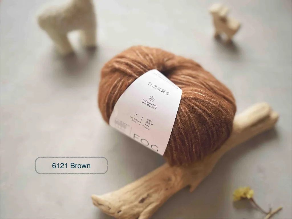- Fog的毛絨相當豐盈且空氣感十足,編織時請勿過度拉扯,也不要多次拆織,以免影響其彈性及造成脫毛。