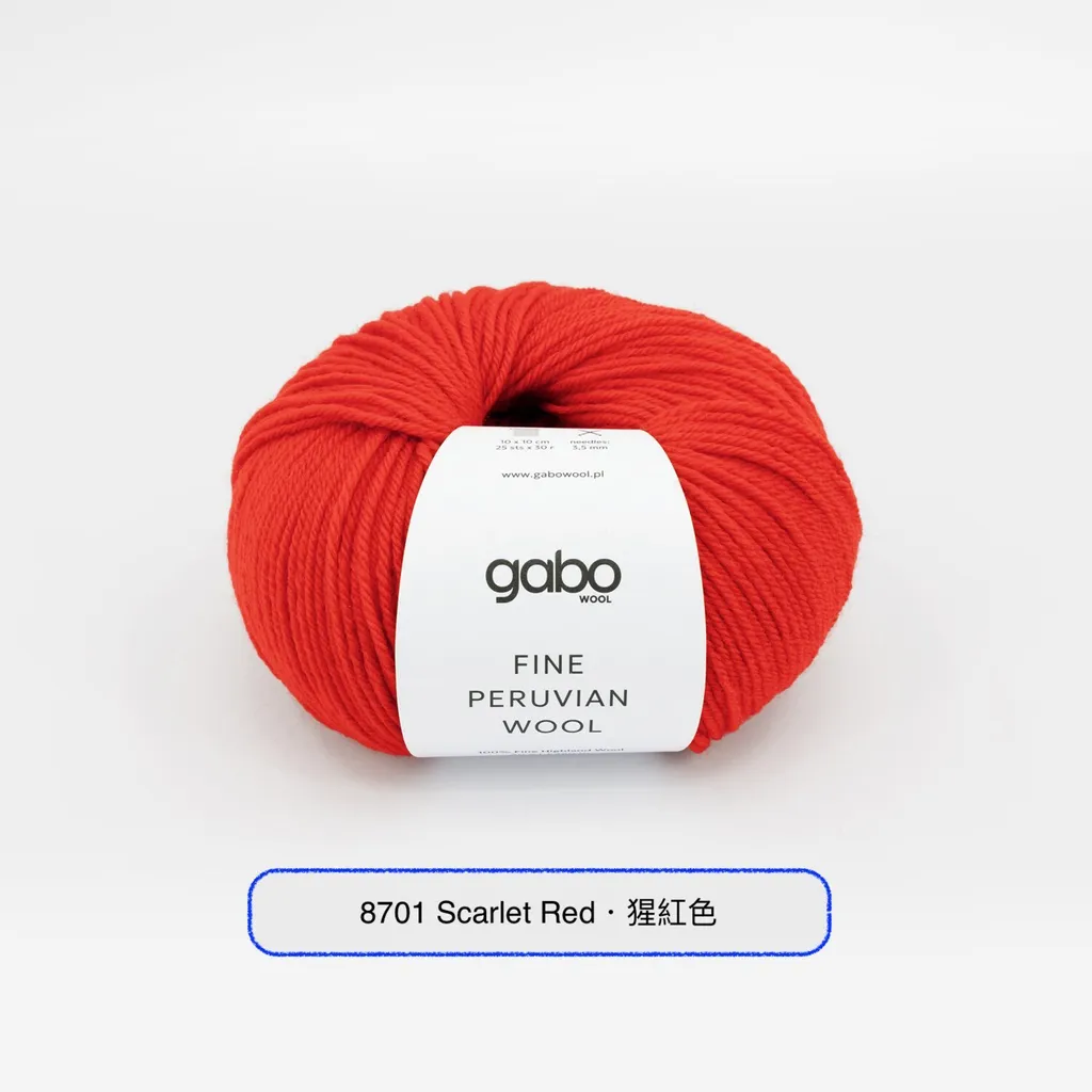 Gabo Wool,來自波蘭的新興線材品牌,以生產高品質、孩童也能安心使用的全天然纖維線材、推廣編織及推行「慢時尚」 (Slow Fashon) 生活為宗旨。旗下各款線材皆符合公平貿易及OEKO-TEX standards標準,使用來自歐洲生產商,優質及對環境影響低的染料,不含重金屬與AZO-free(無偶氮)化學成份。
